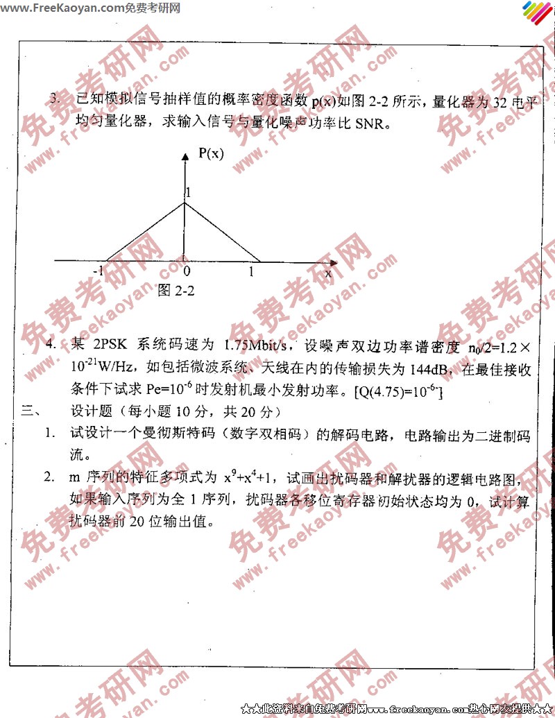 专业课半岛在线注册经验 本站小编 FreeKaoyan 2018-01-23南开大学2005年半岛在线注册真题-通信原理