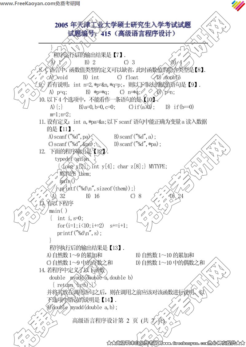 天津工业大学2005年半岛在线注册真题-高级语言程序设计(2)