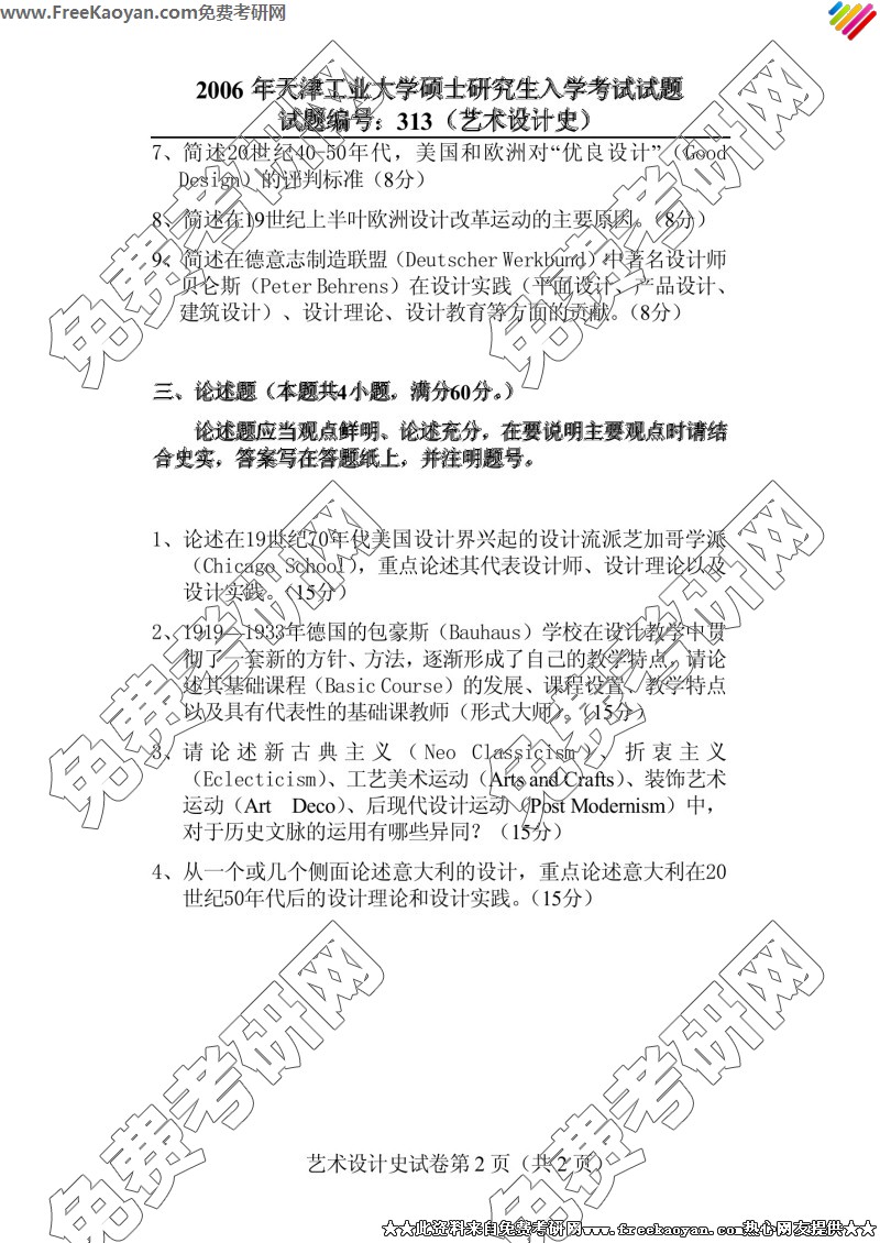 天津工业大学2006年半岛在线注册真题-艺术设计史(313)(2)