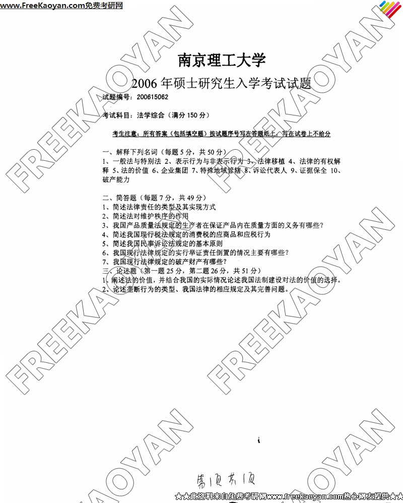 南京理工大学2006年半岛在线注册真题-法学综合(2)