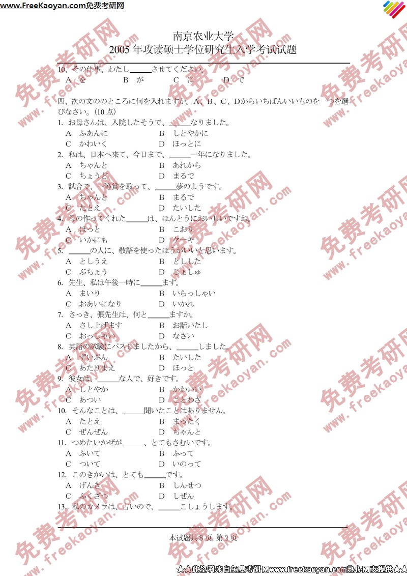 南京农业大学2005年半岛在线注册真题-日语二外(2)