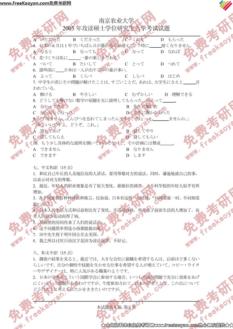 南京农业大学2005年半岛在线注册真题-日语二外(5)