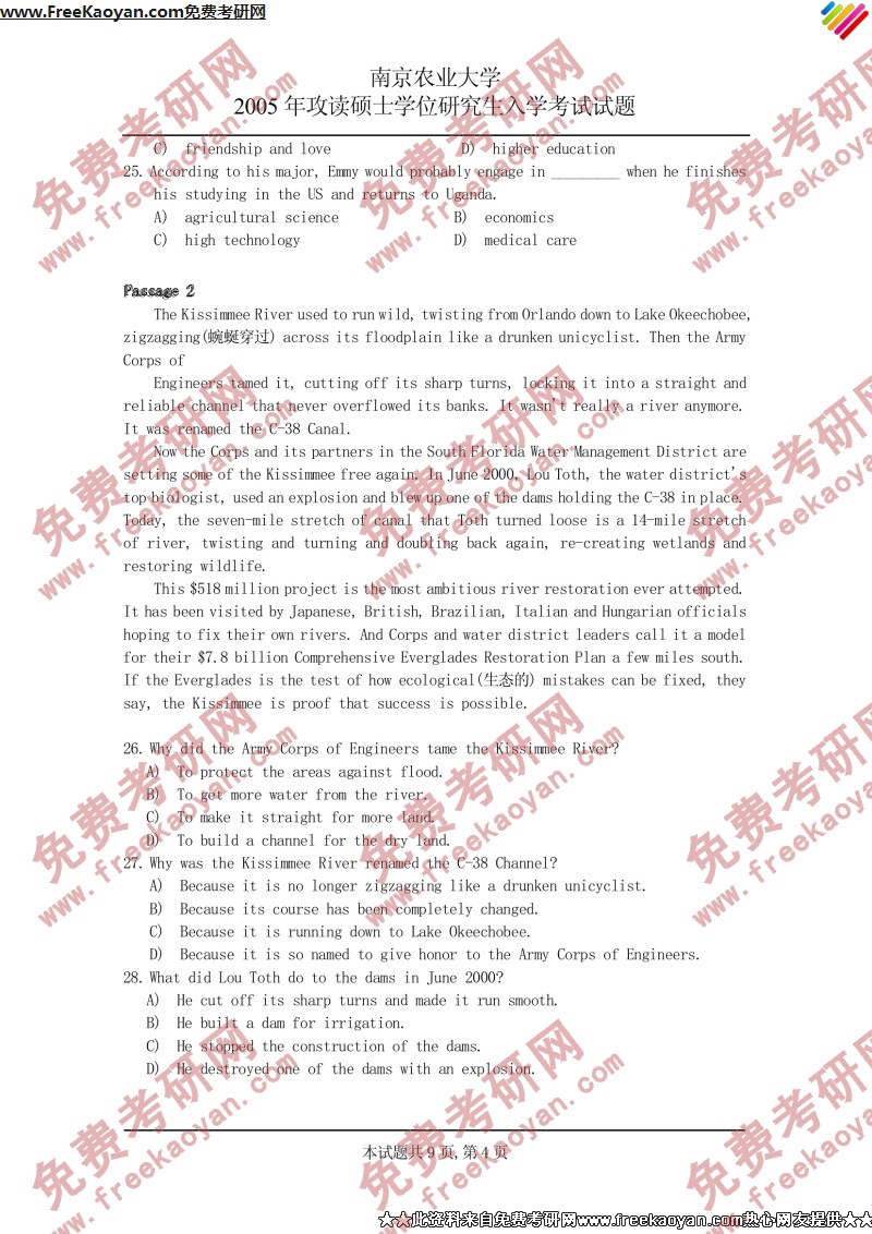 专业课半岛在线注册经验 本站小编 FreeKaoyan 2018-01-23南京农业大学2005年半岛在线注册真题-英语(单)
