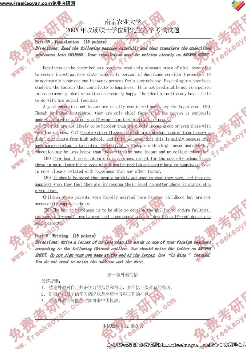 专业课半岛在线注册经验 本站小编 FreeKaoyan 2018-01-23南京农业大学2005年半岛在线注册真题-英语(单)