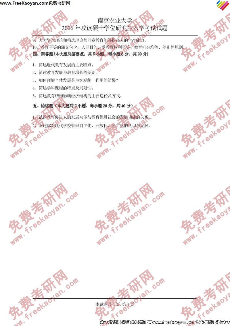 南京农业大学2006年半岛在线注册真题-教育学(4)