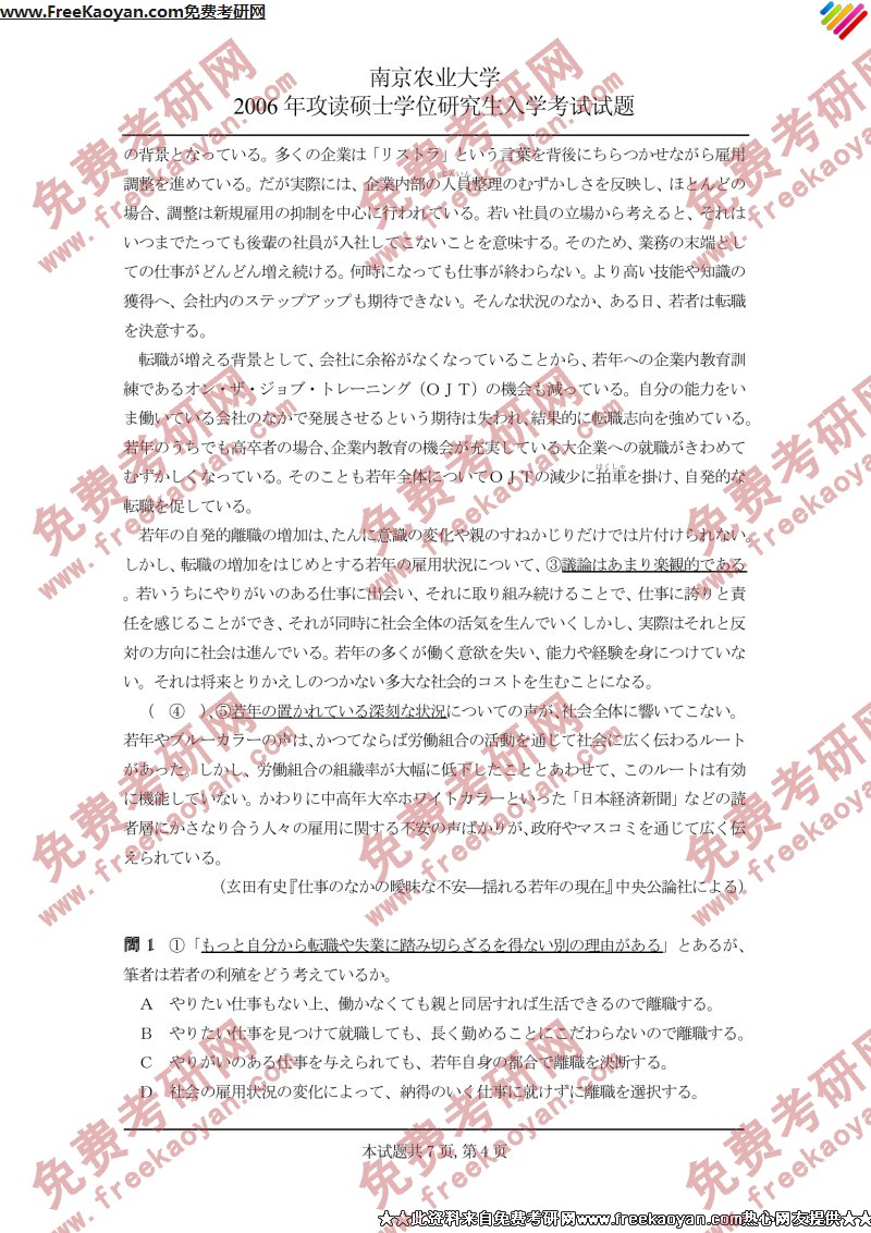 南京农业大学2006年半岛在线注册真题-日语读解与写作(4)