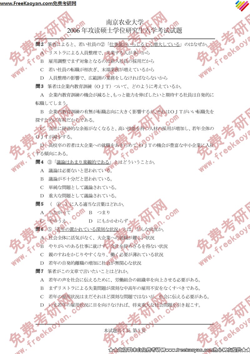 南京农业大学2006年半岛在线注册真题-日语读解与写作(5)