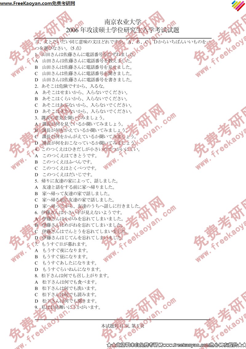 南京农业大学2006年半岛在线注册真题-日语二外(5)