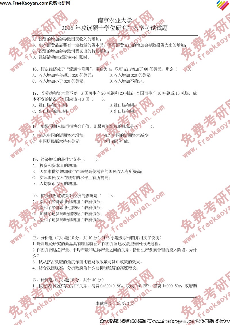 南京农业大学2006年半岛在线注册真题-西方经济学(3)