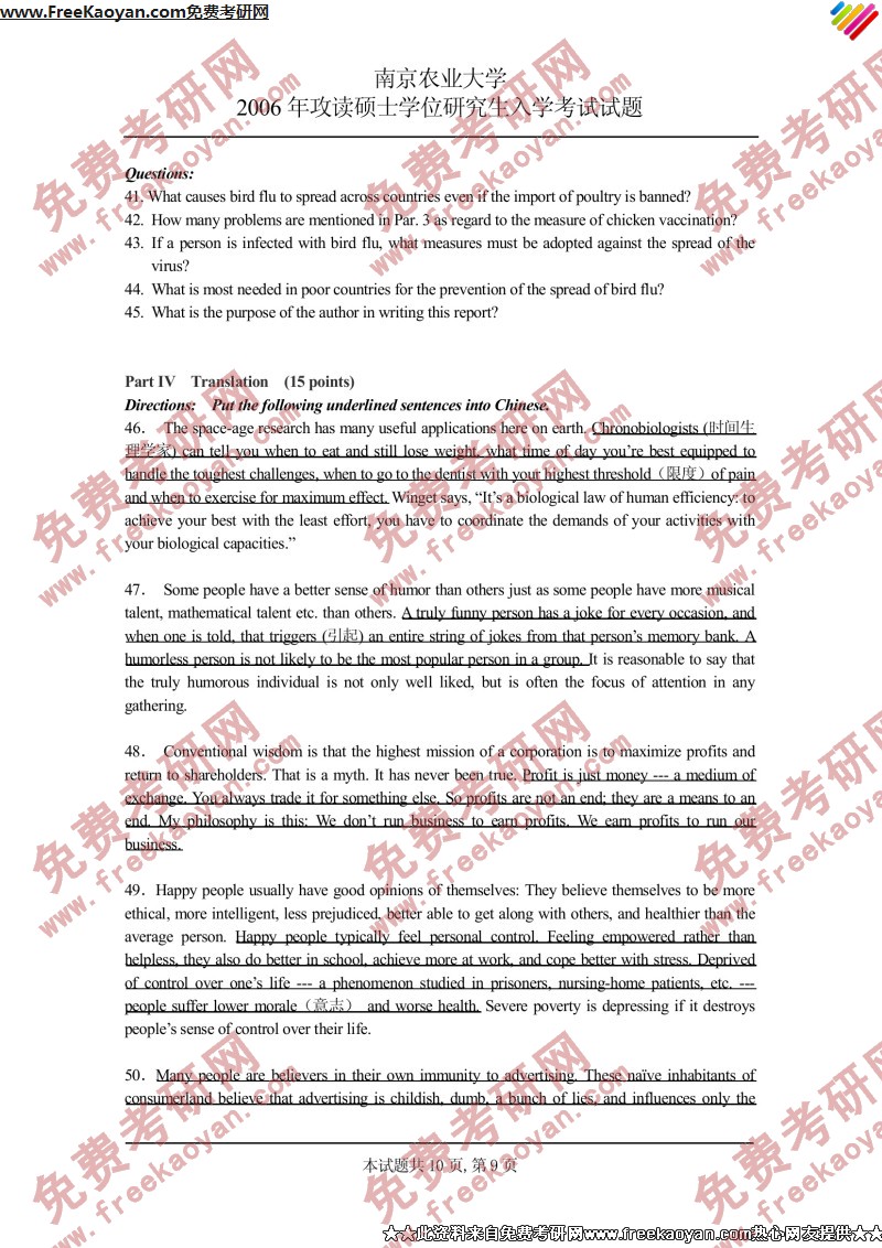 南京农业大学2006年半岛在线注册真题-英语二外(9)