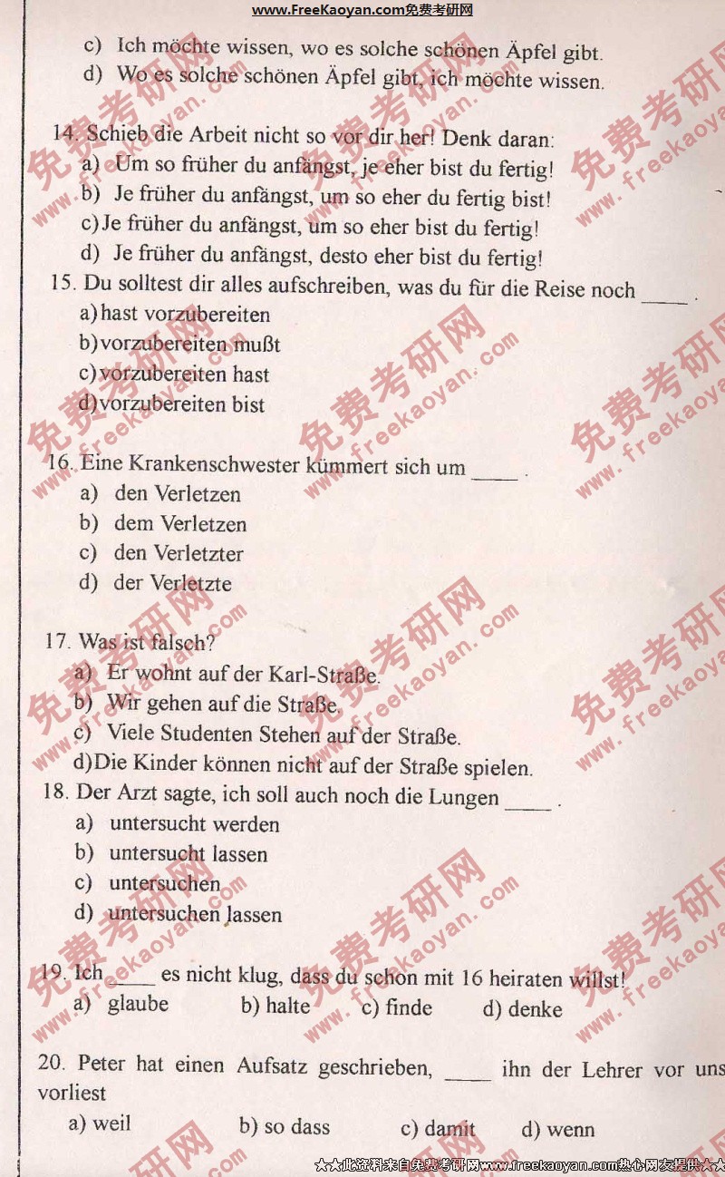 中国地质大学(武汉)2003年半岛在线注册真题-德语(4)