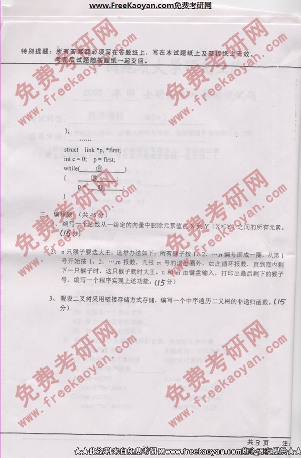 专业课半岛在线注册经验 本站小编 FreeKaoyan 2018-01-23中国地质大学(武汉)2005年半岛在线注册真题-C语言(资源)