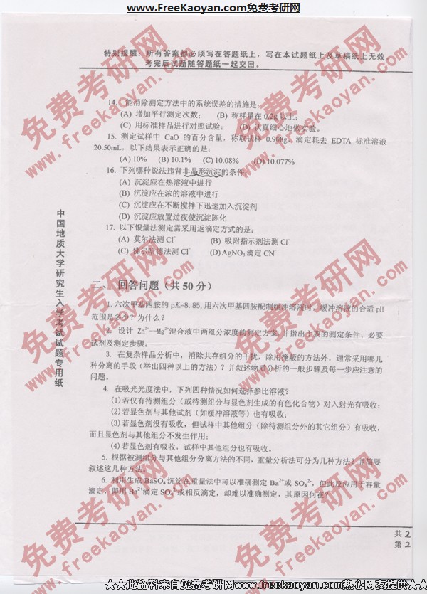 专业课半岛在线注册经验 本站小编 FreeKaoyan 2018-01-23中国地质大学(武汉)2005年半岛在线注册真题-地球化学