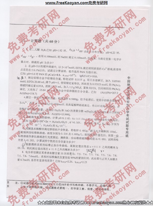 相关话题/中国地质大学 半岛在线注册真题 分析化学