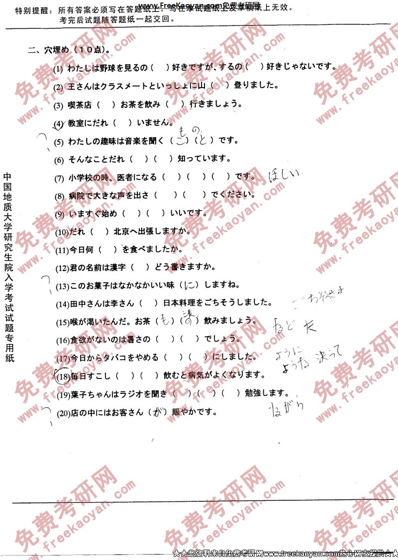 中国地质大学(武汉)2006年半岛在线注册真题-日语(二外)(3)
