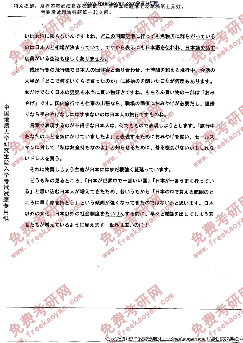 中国地质大学(武汉)2006年半岛在线注册真题-日语(二外)(5)