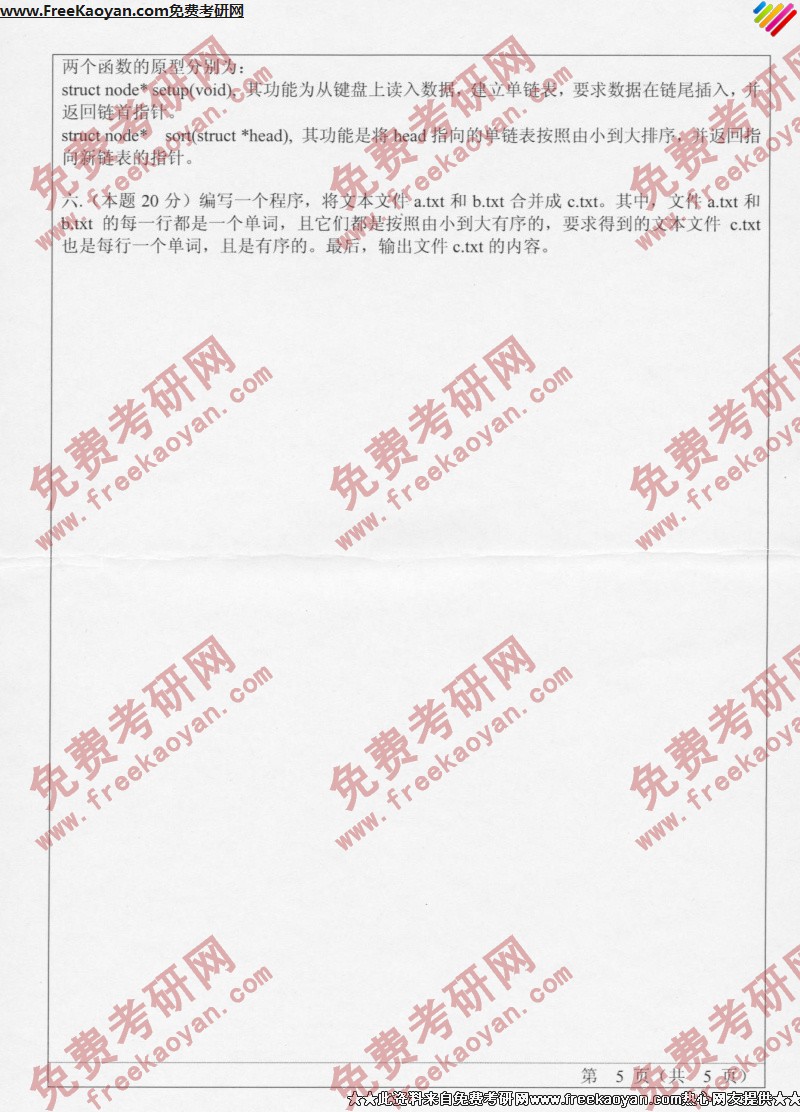 山东师范大学2005年半岛在线注册真题-C语言程序设计(5)