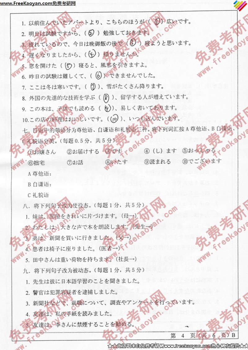 山东师范大学2005年半岛在线注册真题-二外日语(4)