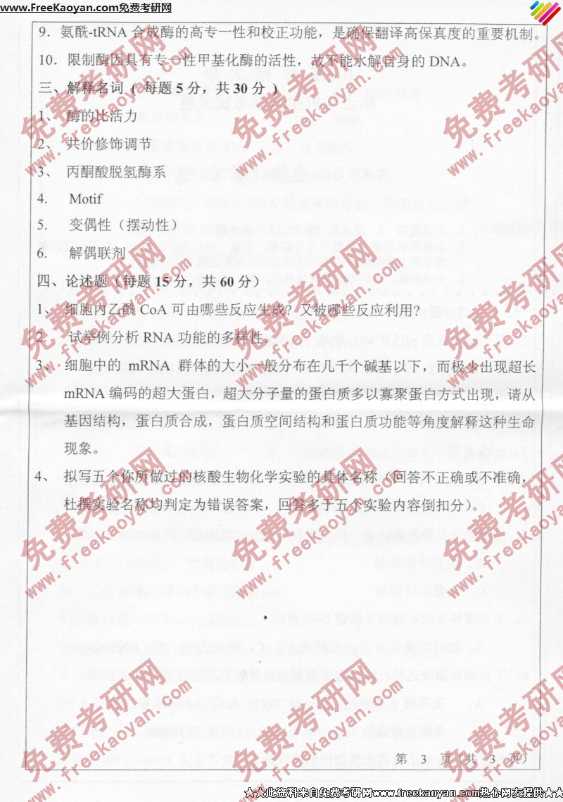 山东师范大学2005年半岛在线注册真题-生物化学(3)