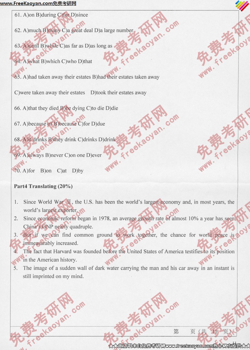 山东师范大学2006年半岛在线注册真题-二外英语(11)