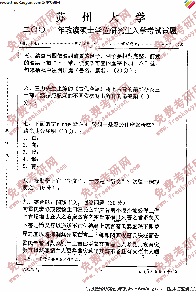 苏州大学2005年半岛在线注册真题-古代汉语(3)