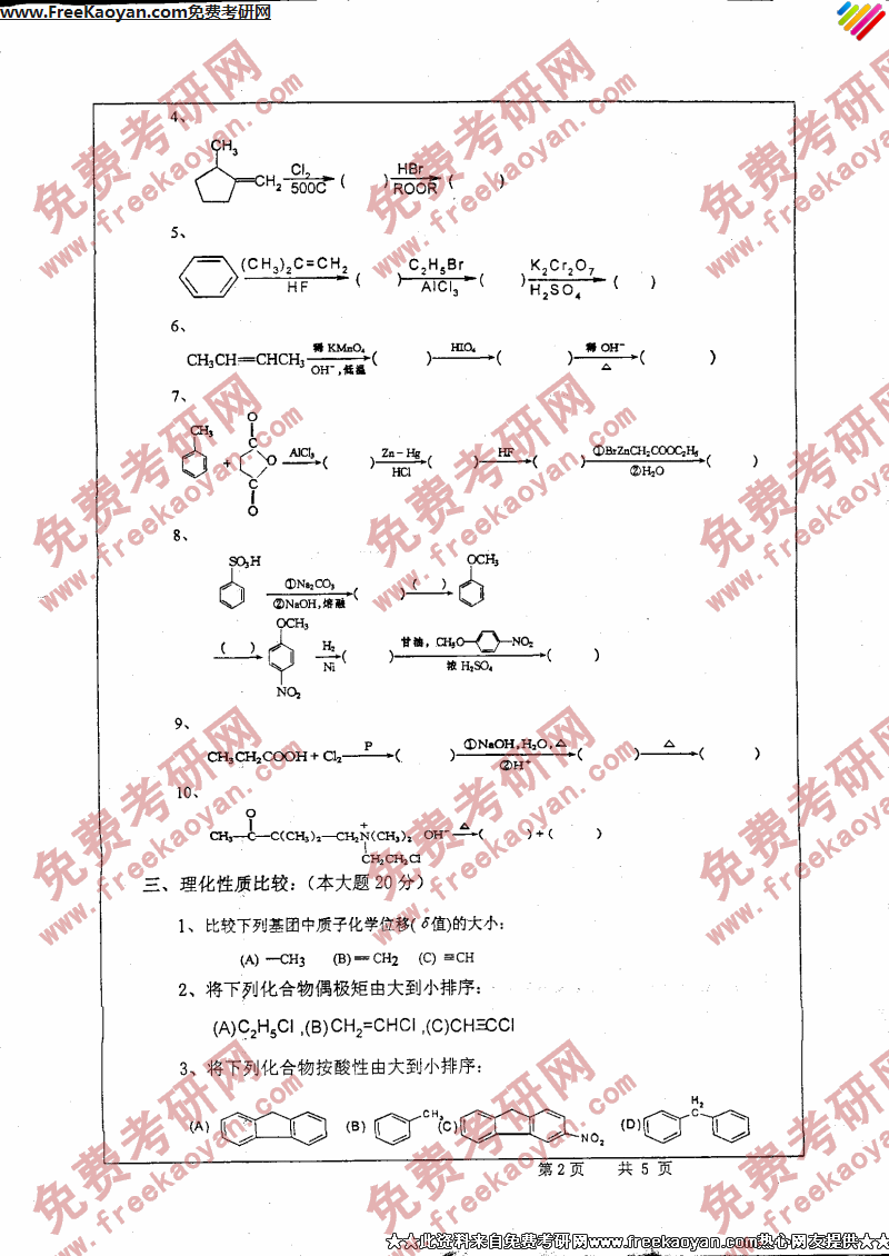 浙江工业大学2006年半岛在线注册真题-有机化学I(2)