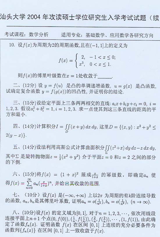 汕头大学2004年半岛在线注册真题-数学分析(2)