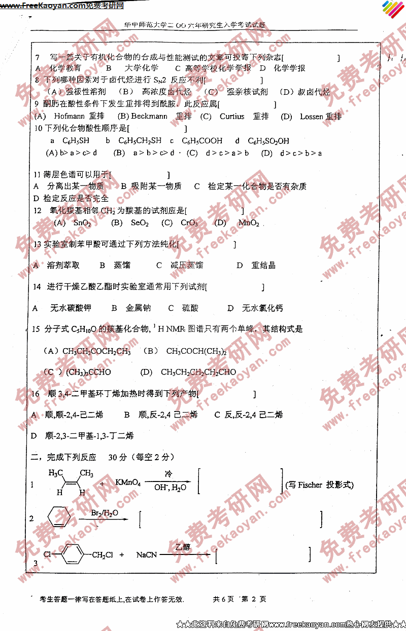 华中师范大学2006年半岛在线注册真题-有机化学(2)