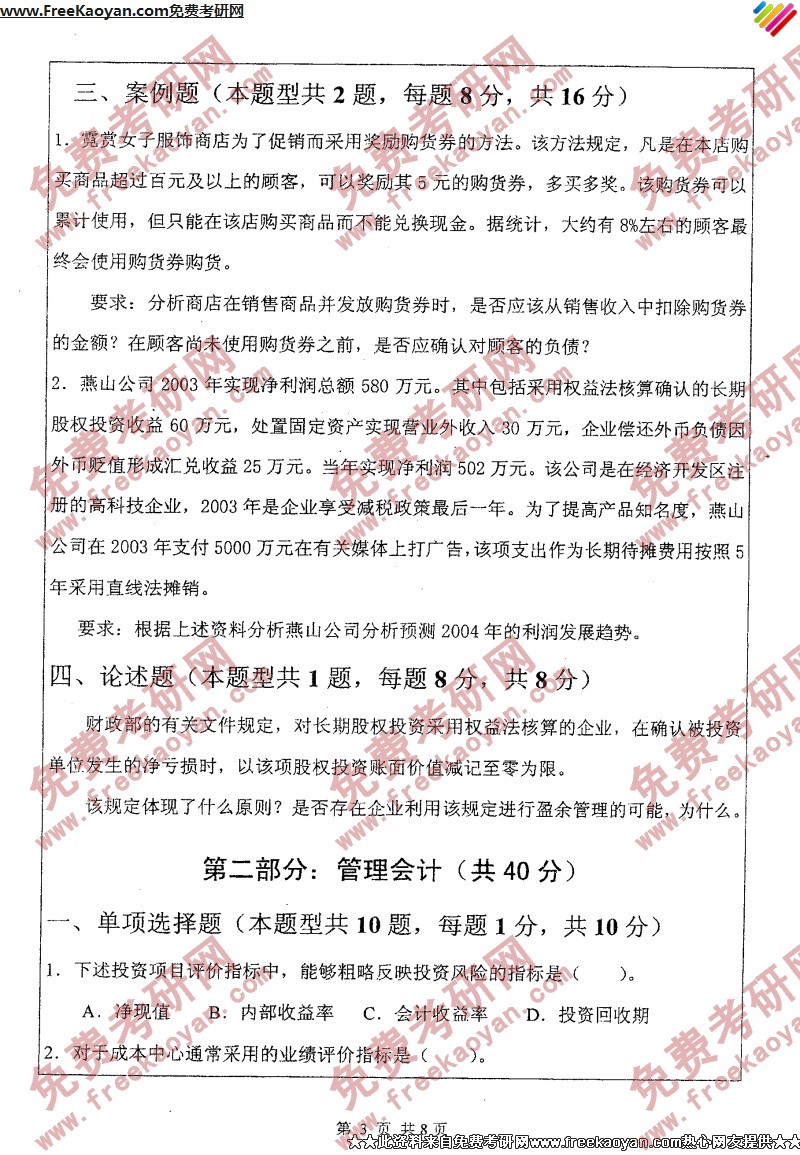 南开大学2004年半岛在线注册真题-会计学综合(3)