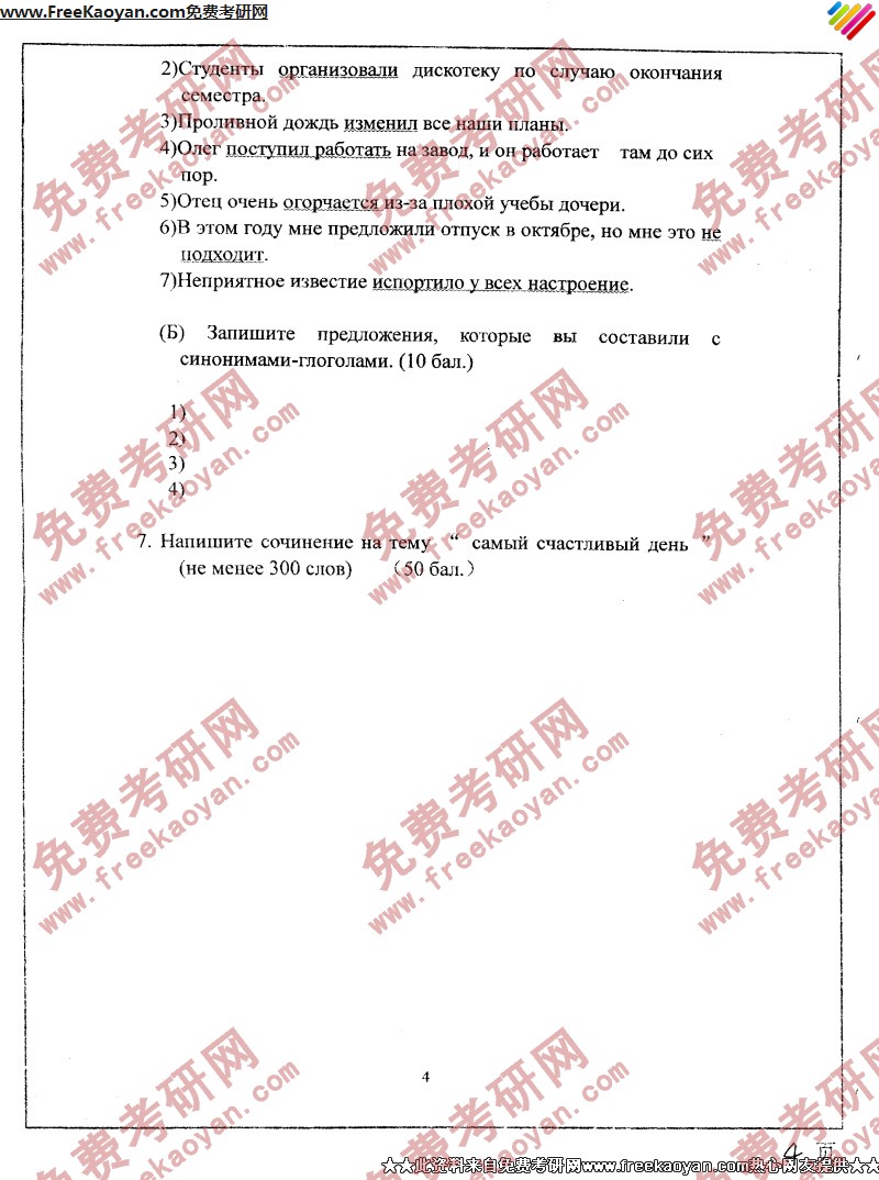 南开大学2004年半岛在线注册真题-基础俄语(4)