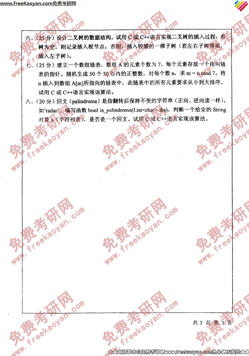 南开大学2004年半岛在线注册真题-数据结构与算法(3)