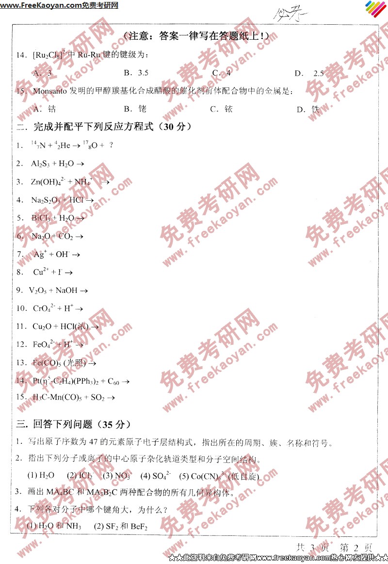 相关话题/南开大学 半岛在线注册真题 无机化学