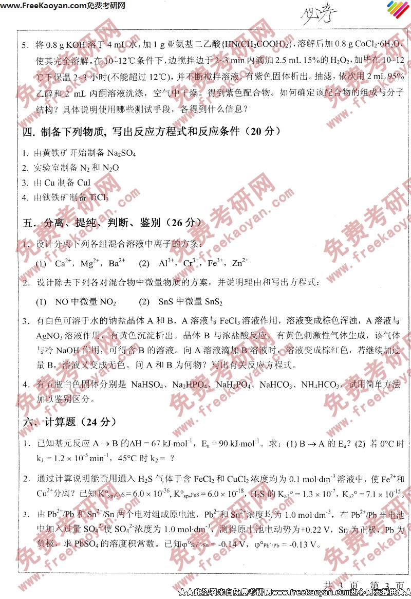 相关话题/南开大学 半岛在线注册真题 无机化学