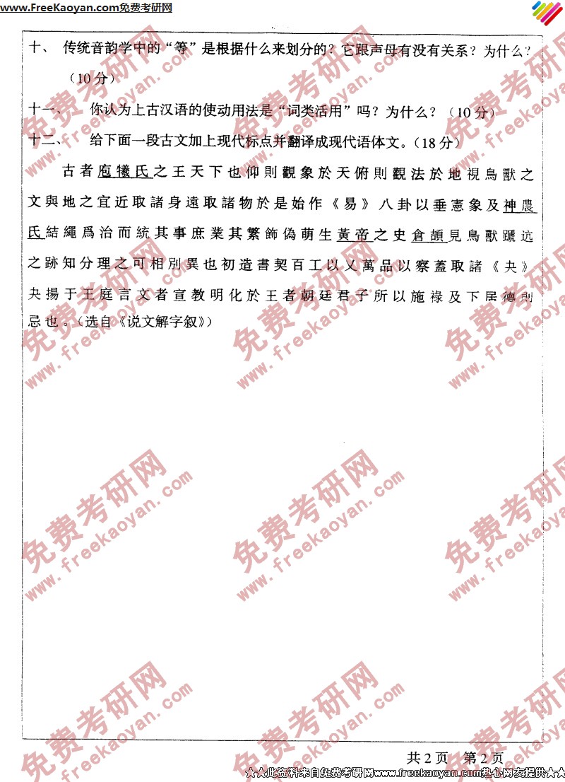 南开大学2004年半岛在线注册真题-现代汉语与古代汉语(2)