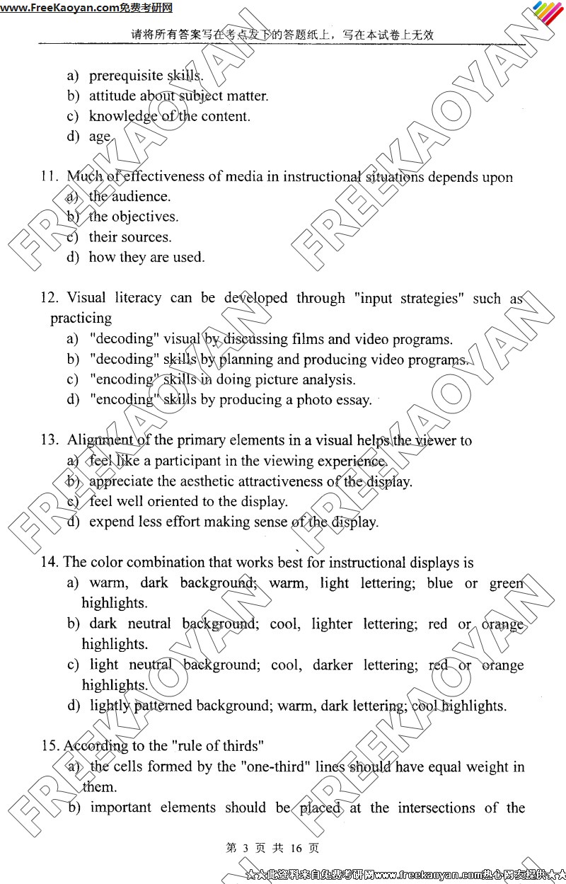 上海外国语大学2005年半岛在线注册真题-教育技术学综合(3)