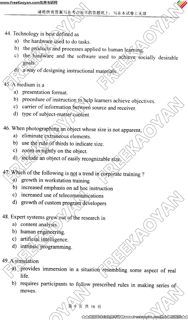 上海外国语大学2005年半岛在线注册真题-教育技术学综合(9)