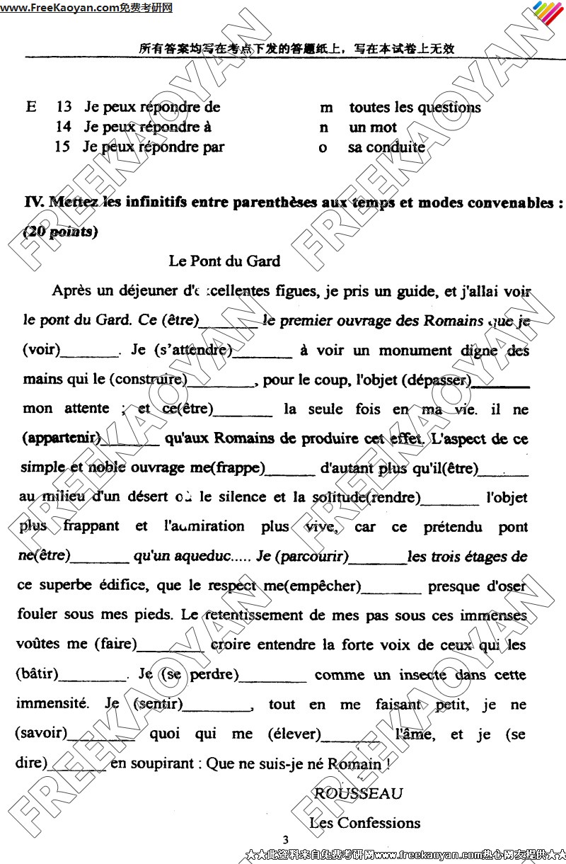 上海外国语大学2005年半岛在线注册真题-综合考试(法语语言文学)(3)