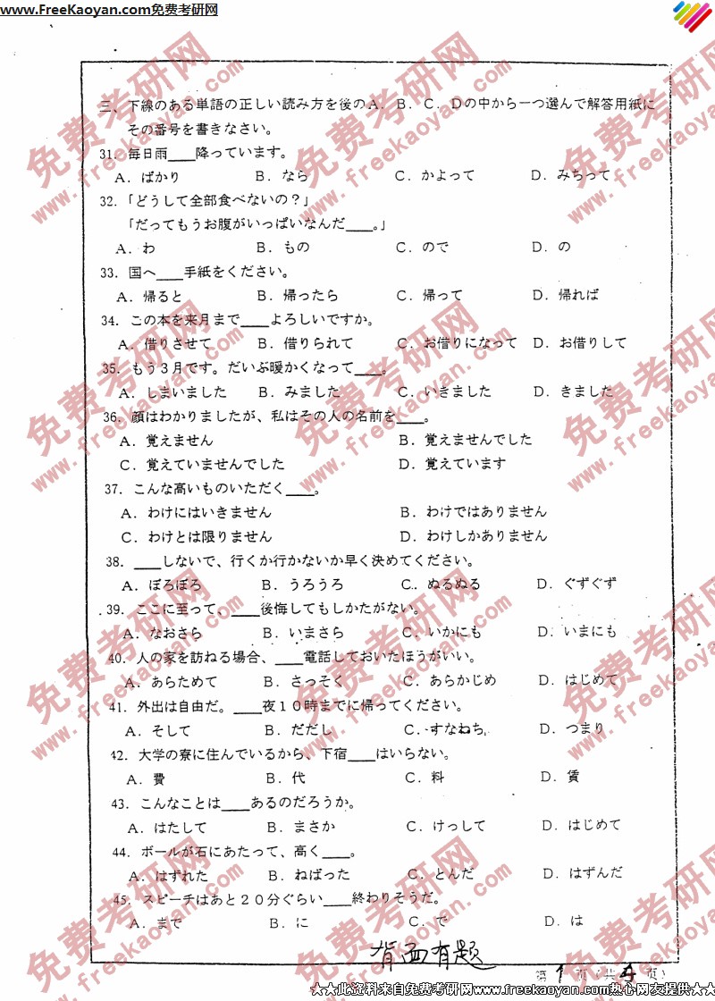 西安交通大学2005年半岛在线注册真题-日语基础(2)