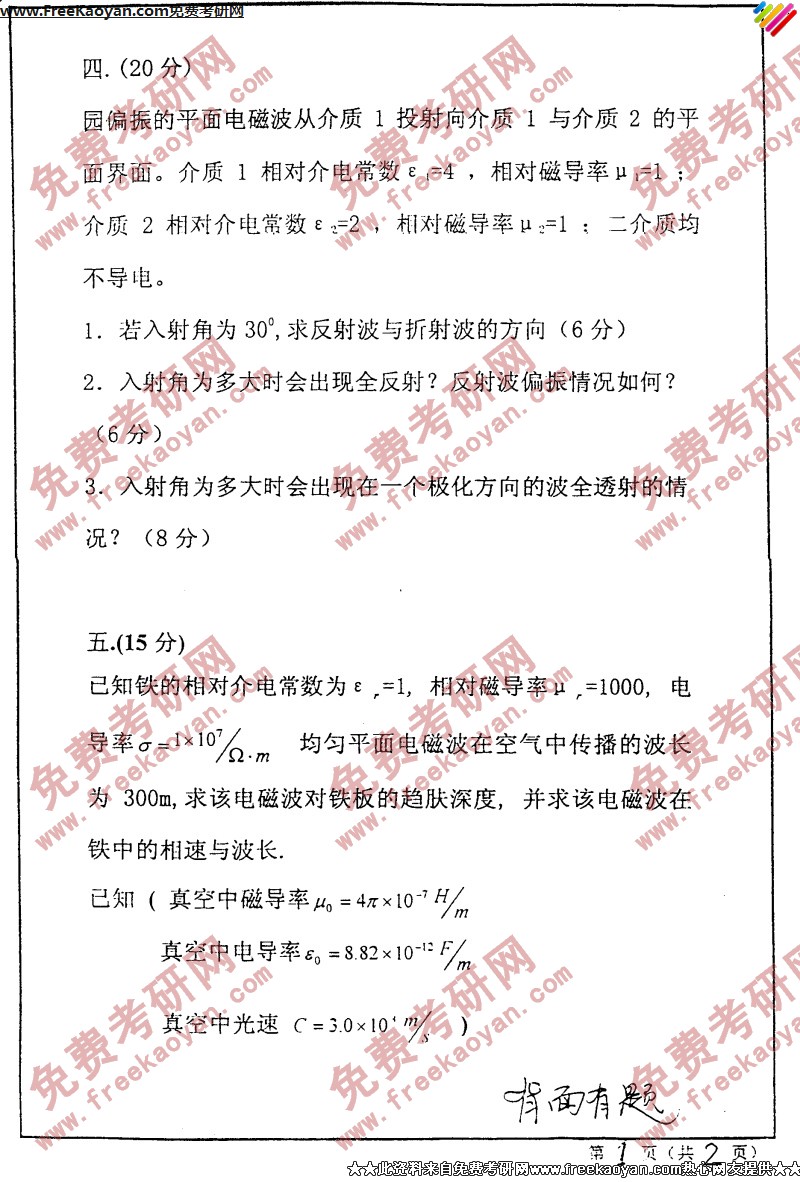 相关话题/半岛在线注册真题 电磁场 西安交通大学 理论