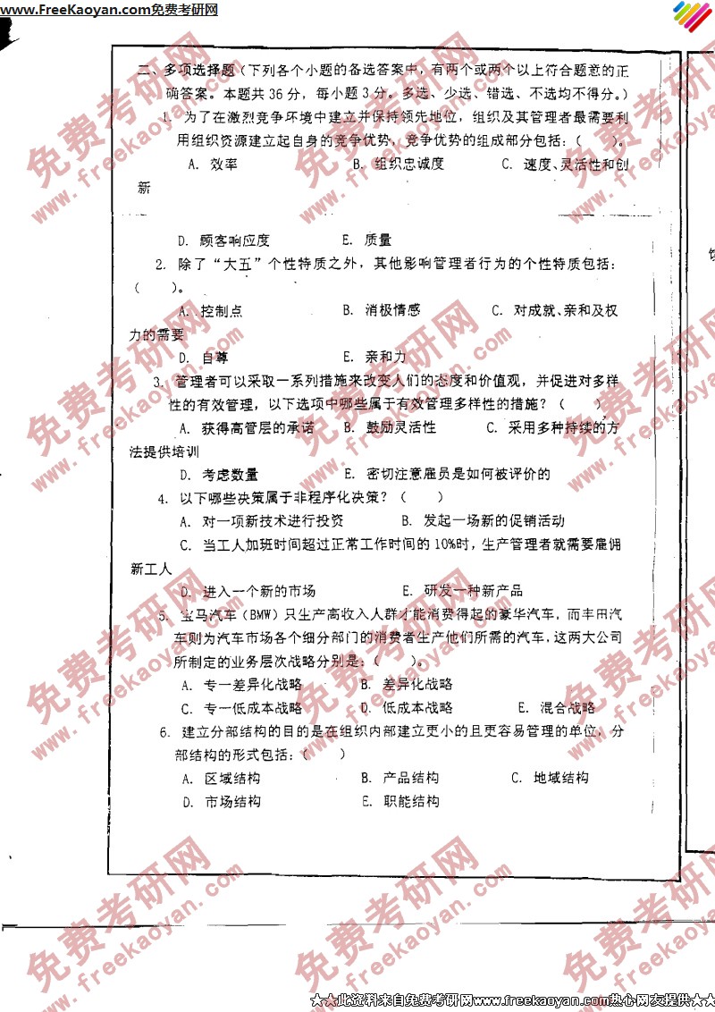 西安交通大学2006年半岛在线注册真题-管理学基础(3)