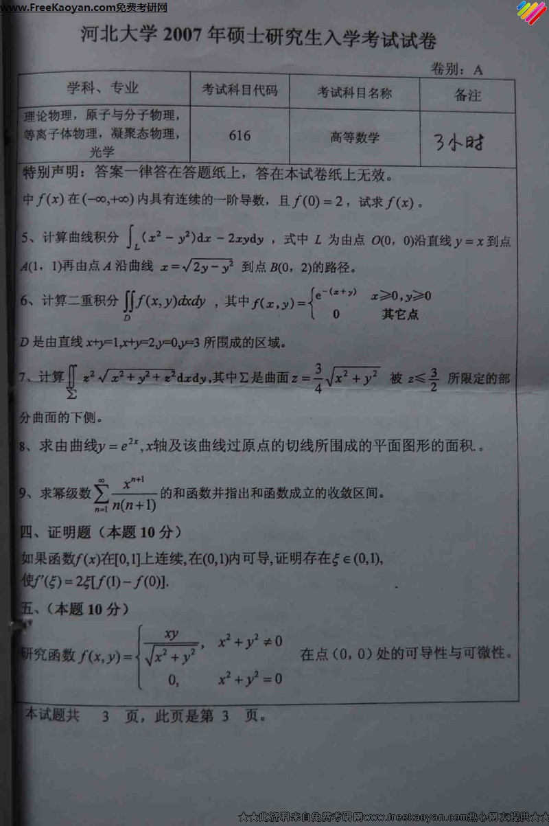 河北大学2007年半岛在线注册真题-高等数学616(3)