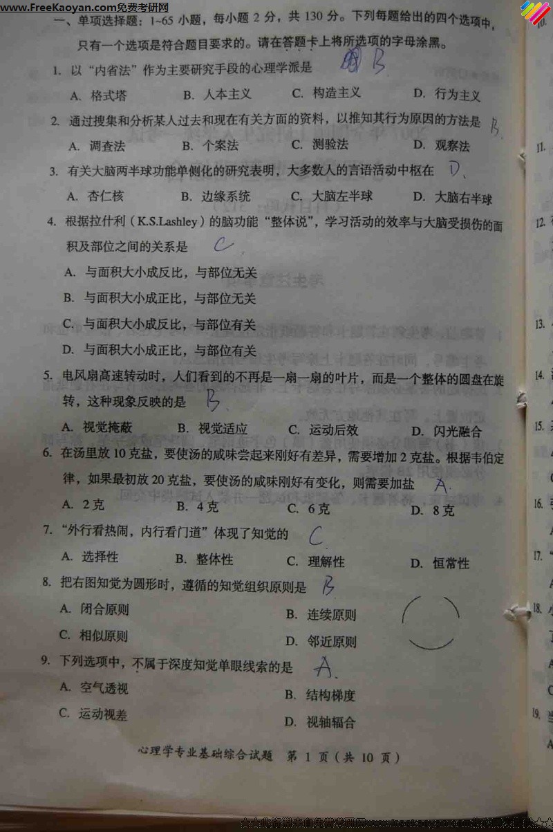 相关话题/半岛在线注册真题 河北大学 专业基础 心理学