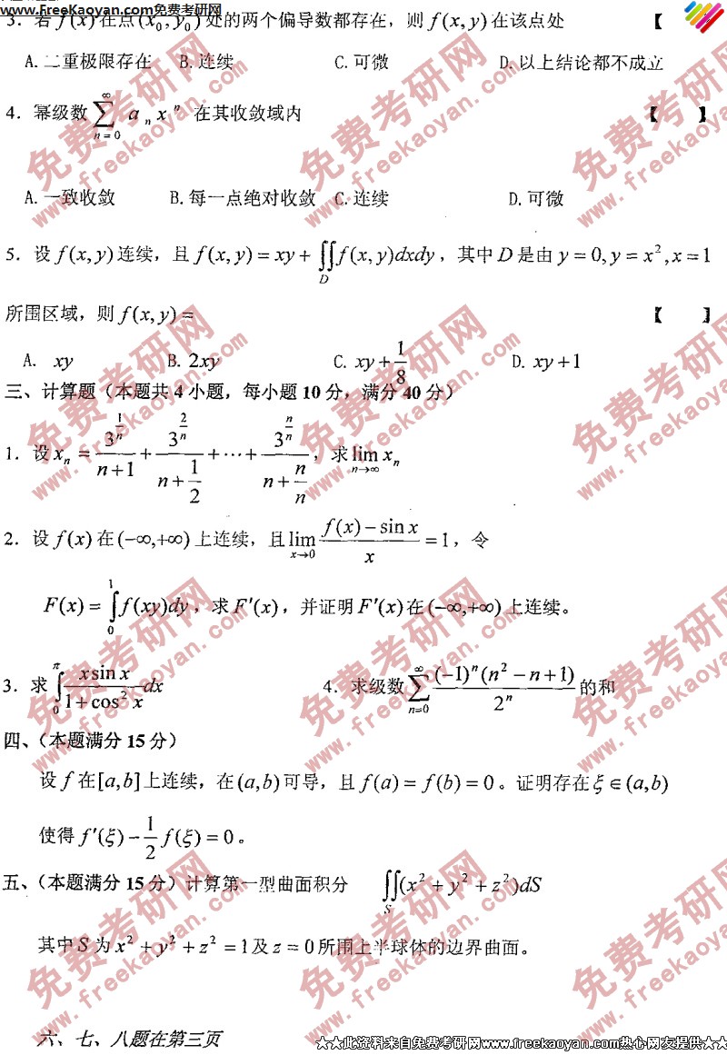 西南大学2006年半岛在线注册真题-数学分析(2)