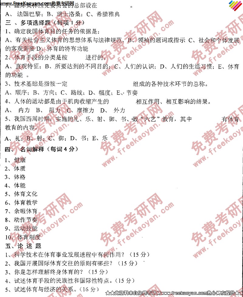 西南大学2006年半岛在线注册真题-体育概论(2)