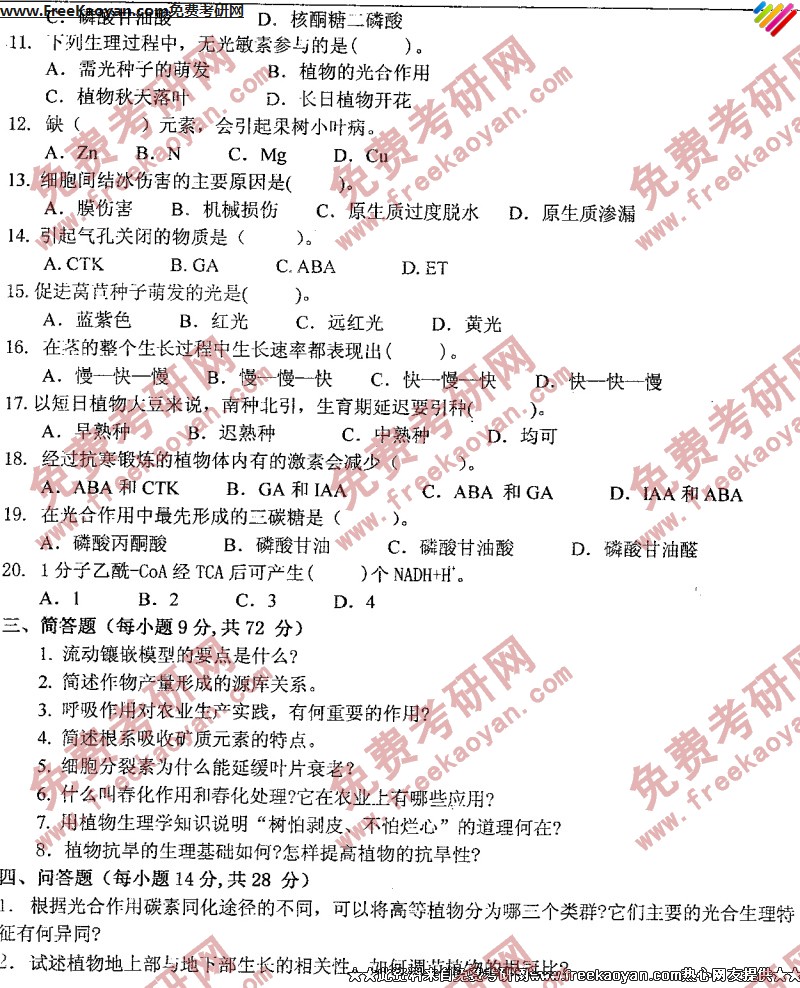 相关话题/半岛在线注册真题 西南大学 生理学 植物