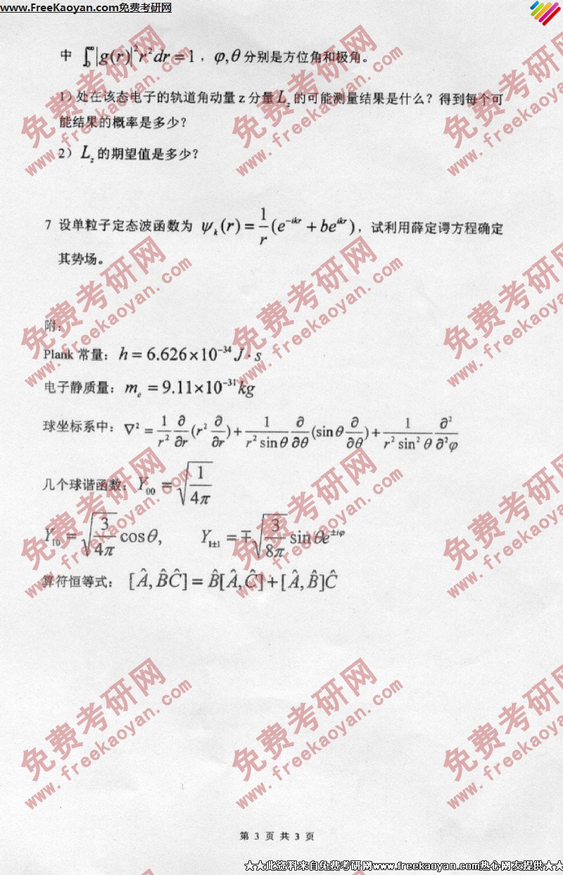 南京理工大学2007年半岛在线注册真题-量子力学(3)