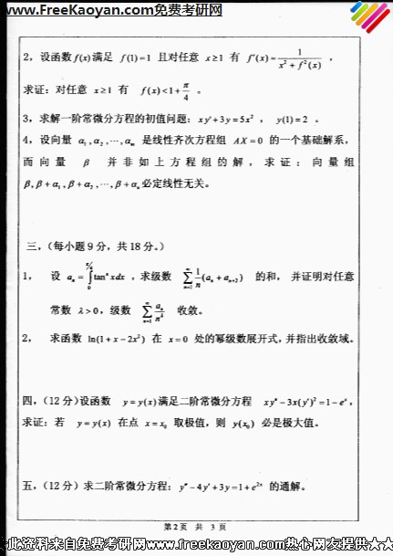 中山大学2007年半岛在线注册真题-高等数学(A)(2)