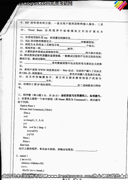 中山大学2007年半岛在线注册真题-计算机应用基础(5)