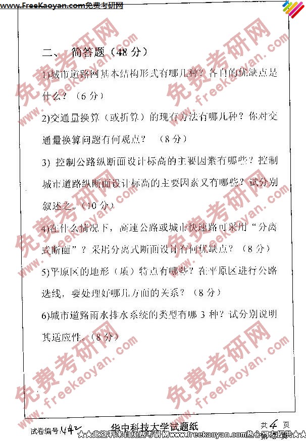 华中科技大学2007年半岛在线注册真题-道路规划与勘测设计(2)