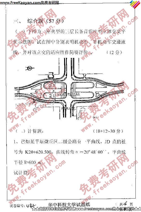 华中科技大学2007年半岛在线注册真题-道路规划与勘测设计(3)